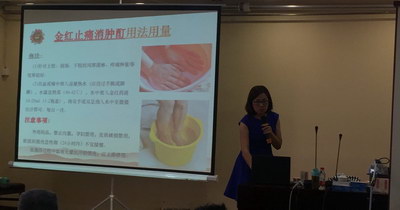 接下來(lái),由學(xué)術(shù)部經(jīng)理楊翩介紹了我們獨創(chuàng )的“金紅整痛療法”。本法以金紅止痛消腫酊為核心,結合中醫及苗醫理論,配合紅外線(xiàn)燈、透皮貼、拔罐、推拿等器械和手法,針對各類(lèi)疼痛進(jìn)行療程治療。在基層臨床開(kāi)展以來(lái),以其療效好,安全易操作的特點(diǎn),得到了醫生患者的好評。